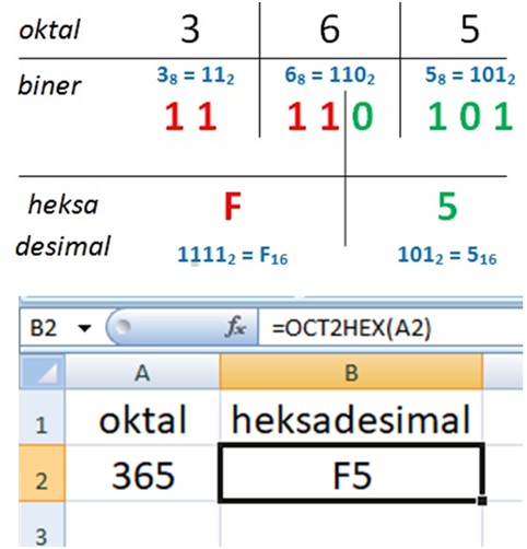 juga dapat menggunakan fungsi microsoft excel DEC2OCT() untuk konversi bilangan desimal ke oktal.